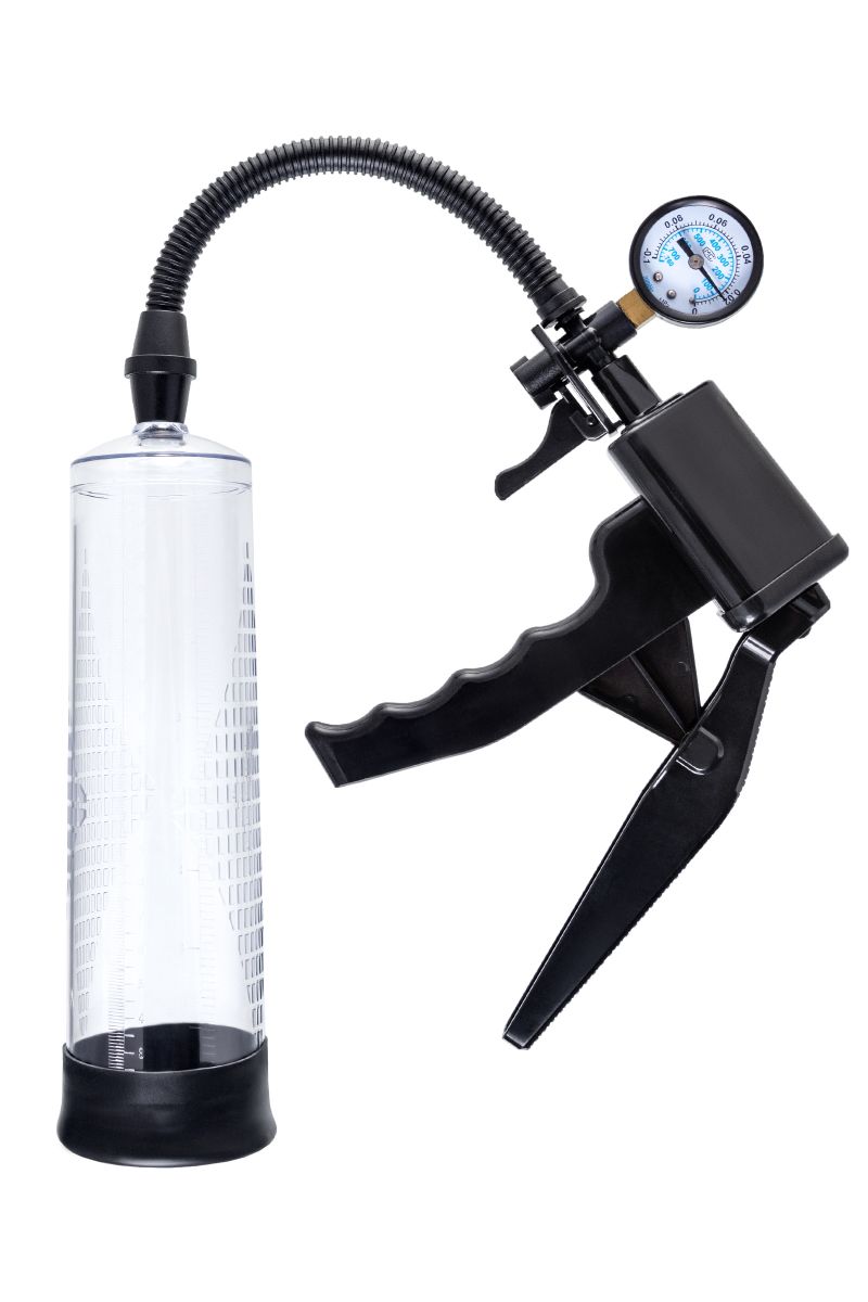 Гарант сексуального могущества для мужчины не только крепкая и надежная эрекция, но и внушительный размер орудия. Для тех, кто стремится достичь впечатляющих результатов в области увеличения размеров пениса, рекомендуется механическая помпа Viggo от Sexus Men. С помпой Viggo серии Sexus Men Training легко управлять своими тренировками по пенбилдингу, усиливать эрекцию и получать новые ощущения от полового акта. Для тренировки, а также чтобы подготовить себя к длительному и яркому сексу, вставьте свой пенис в колбу и откачайте воздух с помощью рычага с пистолетной рукояткой. Благодаря отрицательному давлению увеличивается приток крови к половому члену, за уровнем давления удобно следить с помощью встроенного манометра. Прозрачный ABS-пластик позволяет наблюдать как пенис набирает силу и увеличивается в размере. Отслеживайте результаты прямо в процессе с помощью измерительной шкалы. Для достижения ощутимых результатов рекомендуются систематические занятия по программе эффективного тренинга, которая входит в комплект. Регулярное использование вакуумной помпы Viggo от Sexus Men позволяет: последовательно увеличить длину и диаметр полового члена, делая его более внушительным сделать эрекцию более стабильной, крепкой и продолжительной повысить сексуальную выносливость и половое влечение поднять уверенность в своих возможностях и совершать новые сексуальные подвиги понизить вероятность образований аномальных фиброзных тканей. Помпа Viggo комплектуется удобным большим рычагом с пистолетной рукояткой для разрежения воздуха, механическим манометром, клапаном для быстрого сброса давления и программой для эффективных тренировок. Гофрированный шланг, силиконовая насадка, качественные материалы – все вместе это делает использование помпы Viggo не только безопасным, но и комфортным! Длина колбы - 20 см.
