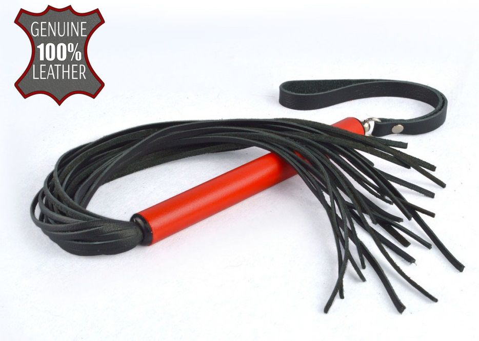 Небольшая плеть с хвостом из тонких лент натуральной кожи. Металлическая рукоять цилиндрической формы. Длина рукояти - 15 см.