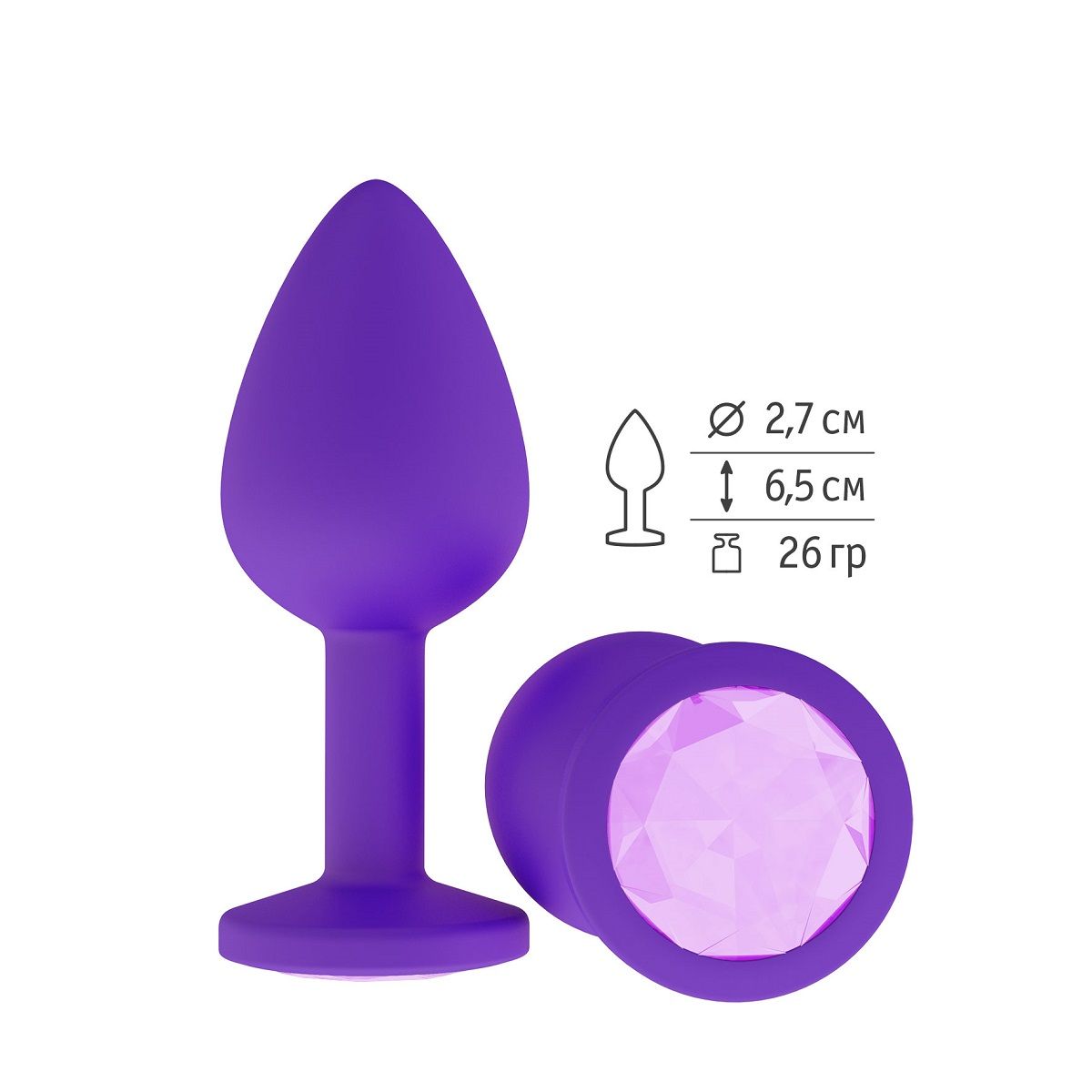 Гладенькая силиконовая пробка с кристаллом в ограничительном основании. Рабочая длина - 6,5 см. Вес - 26 гр.