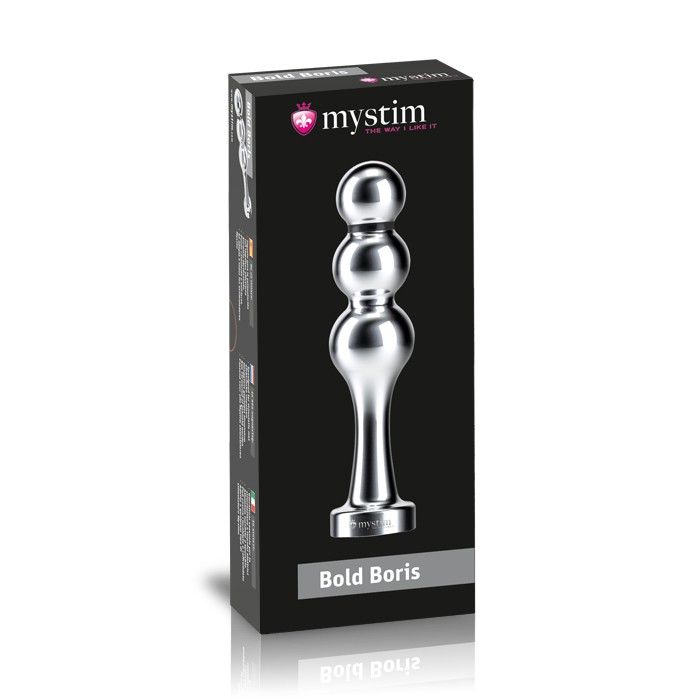 Mystim Bold Boris - длинный фаллоимитатор, который благодаря своим 3 шарикам предлагает интенсивную вагинальную или анальную стимуляцию даже без какого-либо тока. Гладкий металл плавно скользит по коже, в то время как фаллоимитатор вводится шарик за шариком. Выраженные округления этой игрушки увеличивают уровень возбуждения с каждым шариком, ведущим к новым высотам при каждом крошечном движении. Когда активируется ток стимуляции, весь живот заполнен глубоким и приятным покалыванием или чувственным пульсированием - в зависимости от настроек устройства стимуляции. Если вы напрягаете свои мышцы, стимуляция сразу становится более интенсивной, так что вы можете контролировать и увеличивать свое сексуальное возбуждение, не используя ваши руки, пока это не приведет вас к невероятным оргазмам. Прочные шары Bold Boris гарантируют, что стимуляция всегда наиболее интенсивна при максимальном диаметре шаров. Если вы перемещаете игрушку даже минимально, совершенно новые, мягкие волны или жесткие токи электрического возбуждения, проходят через анус и влагалище. Bold Boris изготовлен из медицинского алюминия и полируется аккуратно вручную. Для дополнительных ощущений его можно нагревать на нагревателе или охлаждать в холодильнике: он предназначен для сохранения температуры в течение длительного периода времени. Внимание! Работает от электростимулятора-блока питания Mystim Tension Lover или Pure Vibes, или с новейшим беспроводным пультом Mystim Cluster Buster (в комплект не входят, приобретаются отдельно!).