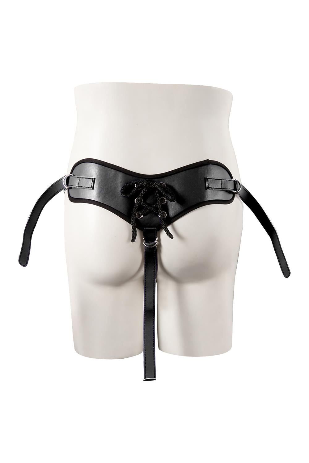 Трусики из искусственной кожи и металлических колец. Поставляется с 2 кольцами разных размеров. Совместимы с широким спектром базовых фаллоимитаторов. Диаметр колец - 4 и 5,4 см.