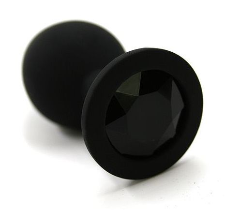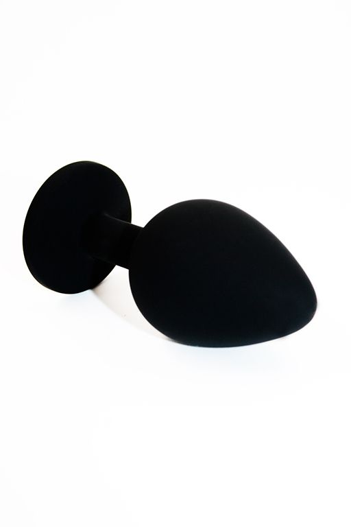 Анальная пробка из силикона черного цвета, размер М. Страз в основании круглой формы, выполнен из стекла черного цвета. Упакована в вельветовый мешочек для хранения. Вес - 46,5 граммов.