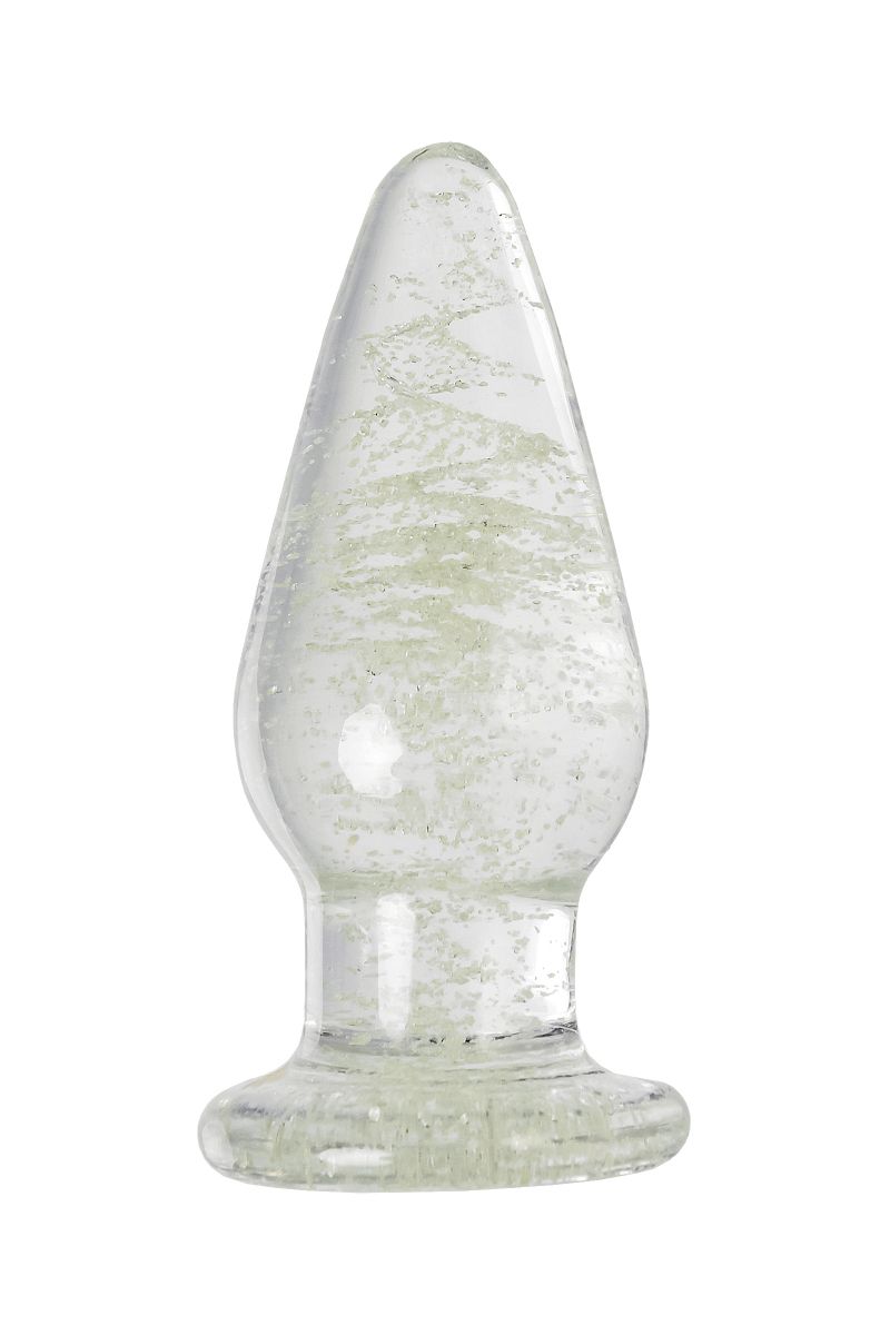 Прозрачная анальная втулка из закаленного стекла содержит флуоресцентные микрочастицы, которые светятся в темноте. Такой необычный дизайн помогает внести в интимные игры разнообразие. Достаточно зарядить игрушку под дневным или искусственным светом, чтобы насладиться ее мерцанием и свечением в темноте. Оптимальный размер, обтекаемая форма конуса и наличие ограничителя делают использование анальной игрушки безопасным.