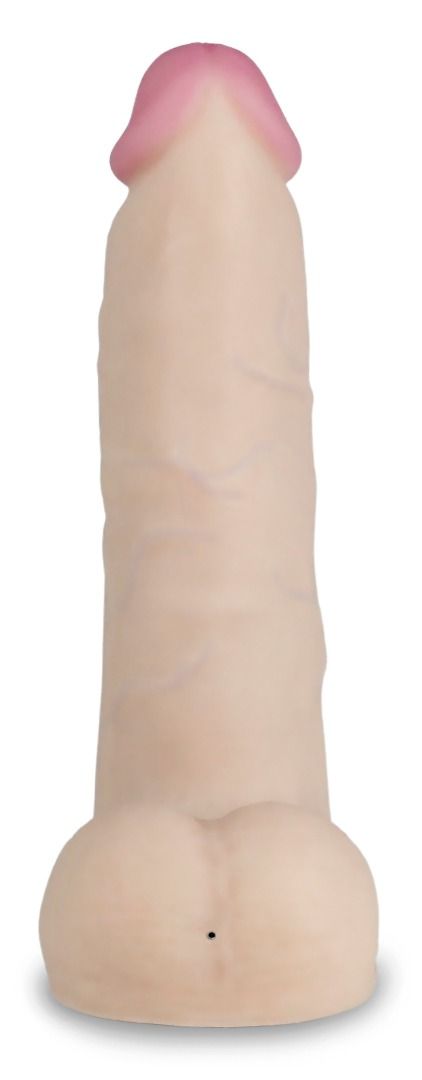 Реалистик с вибрацией на присоске. Встроенный литий-ионный аккумулятор, заряжаемый практически от любого USB разъема. 12-скоростной механизм управления вибрацией. Изделие обладает гибкостью и упругостью, приближено по тактильным ощущениям к биологическому прототипу. Вибрационный механизм находится внутри упругого корпуса, который в свою очередь покрыт сверхмягкой оболочкой из материала неоскин. Индикатор зарядки просвечивает сквозь материал и находится рядом с кнопкой включения-выключения. Надавливанием и удержанием этой кнопки в течение 3 секунд механизм вибрации включается и выключается. Кратковременное нажатие кнопки меняет режим работы. Шнур имеет штырек, который вставляется в основании изделия (в области мошонки). Кабель с коннекторами входит в комплект изделия. Время зарядки составляет 30-60 минут, при этом индикатор гаснет. Рабочая длина - 17 см. Диаметр головки - 2,5 см.